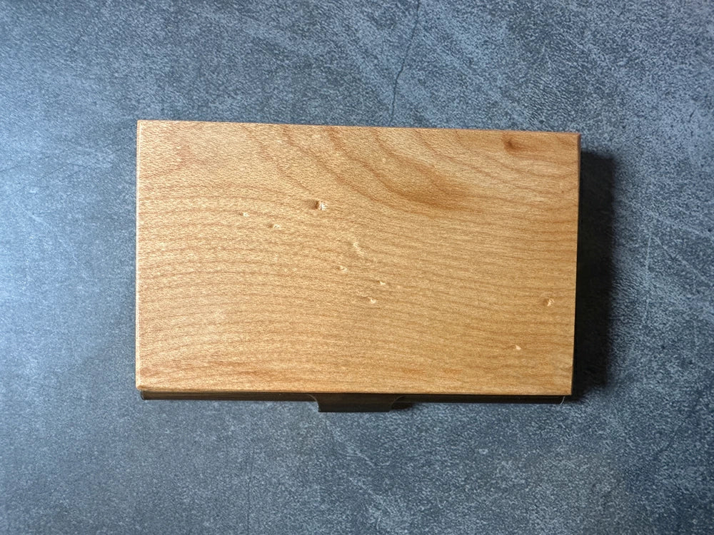 家具や器、建具はもちろん、寺社仏閣の装飾や工芸品にも使われ、古くは刀の鞘(さや)や武具にも採用されていたほど。暮らしと文化のどちらにも根付いてきた木で、その上品な美しさから「優雅さ」「気品」「あたたかさ」を象徴する特別な素材と言われています。そんなさくらの名刺入れ制作実績を紹介します。とても硬く、木目も面白く綺麗な木目が多いです。