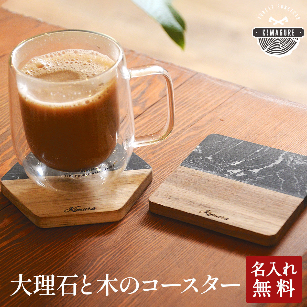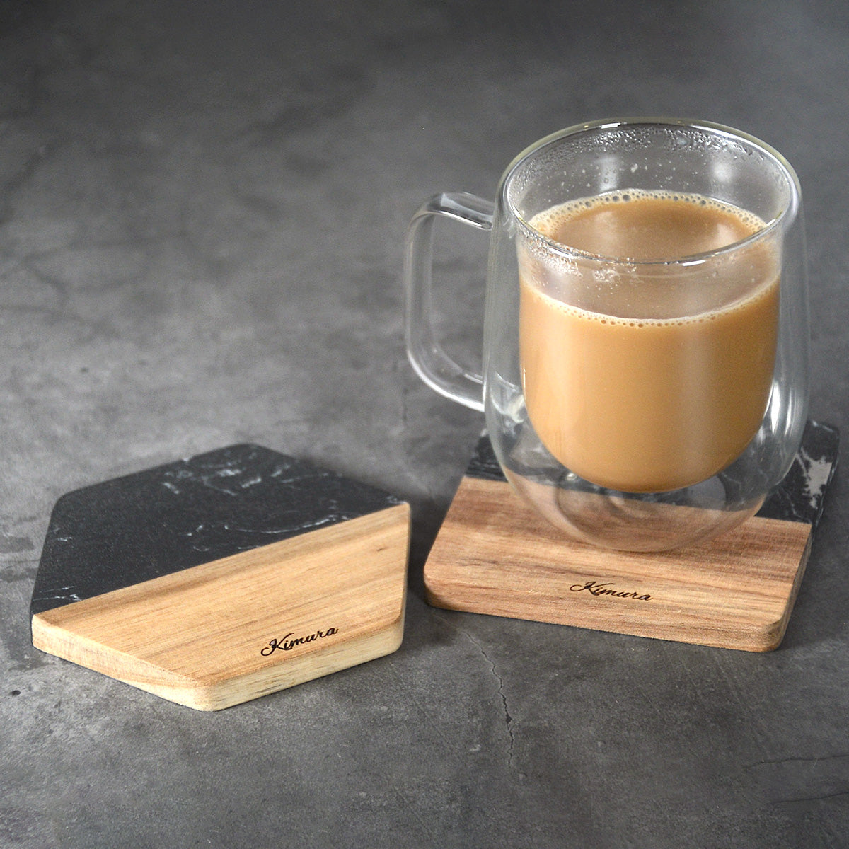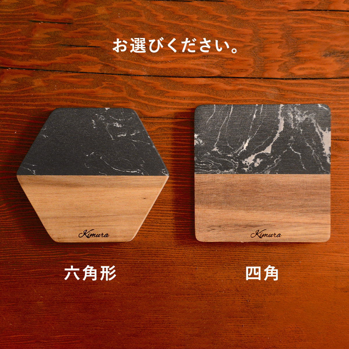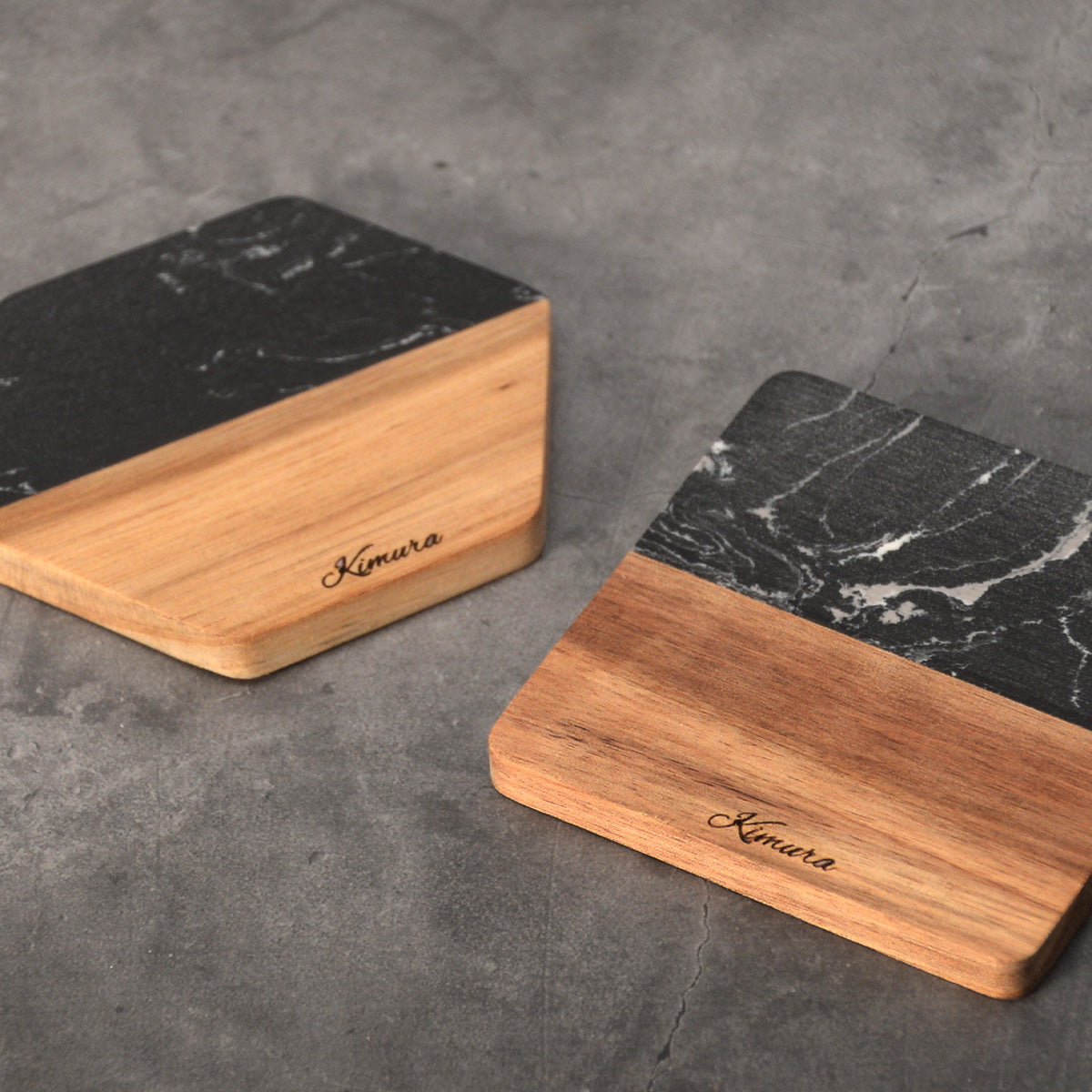 店長が「1000円ポッキリでいい!」と言いはって決まった驚き価格の名入れ無料の大理石と高品質な木がコラボしたおしゃれコースター