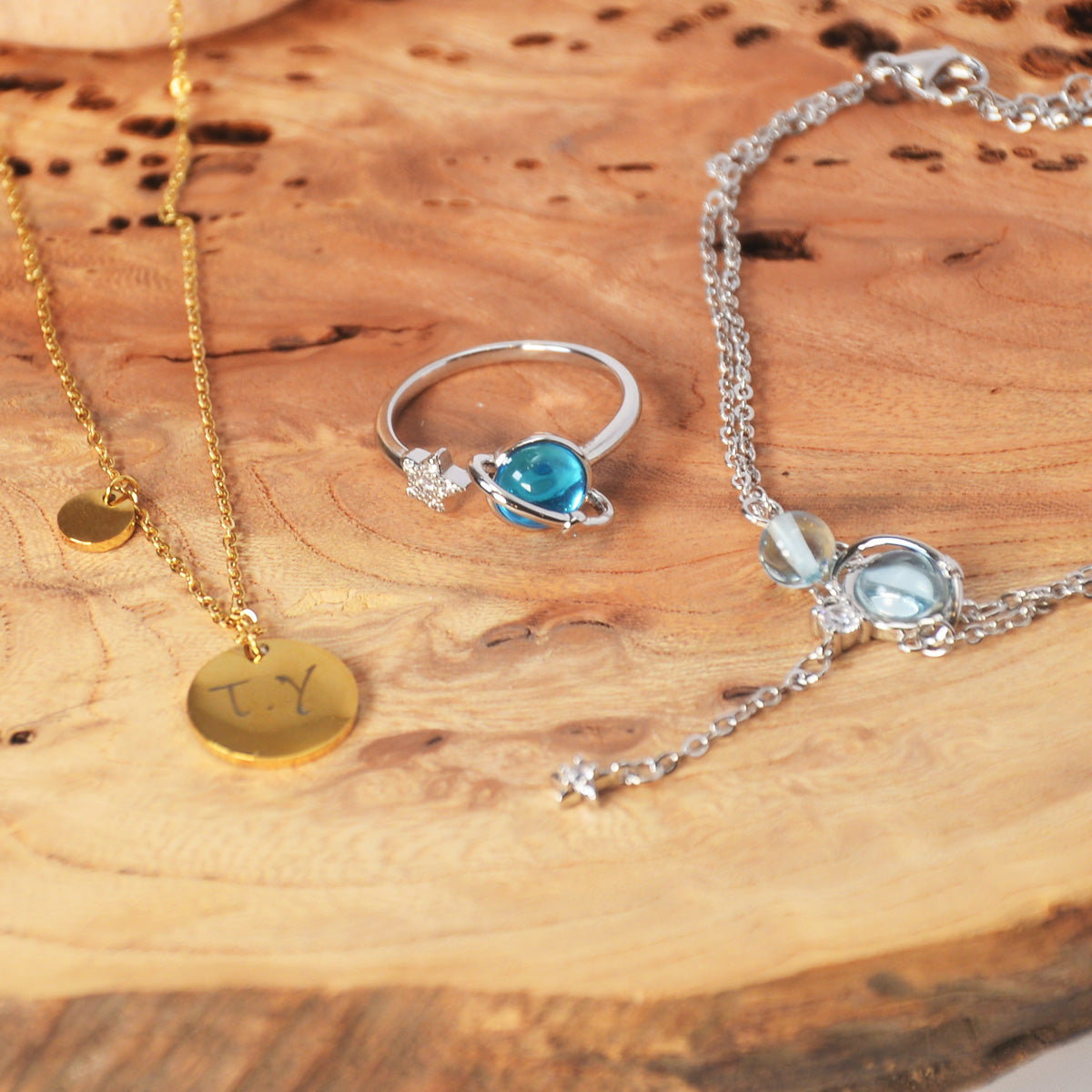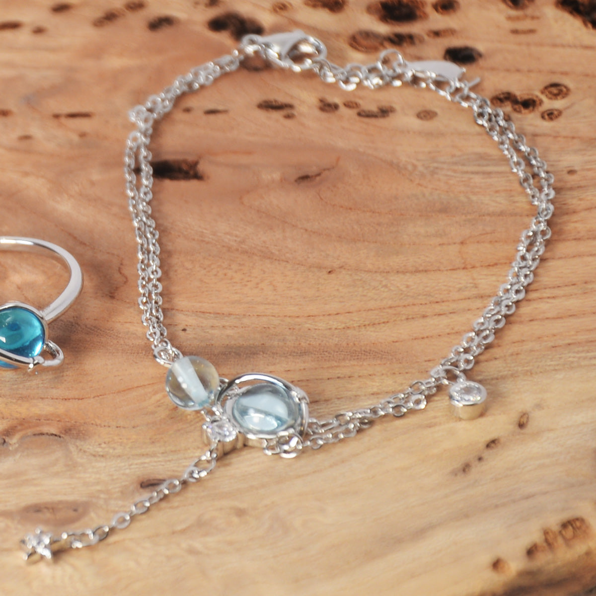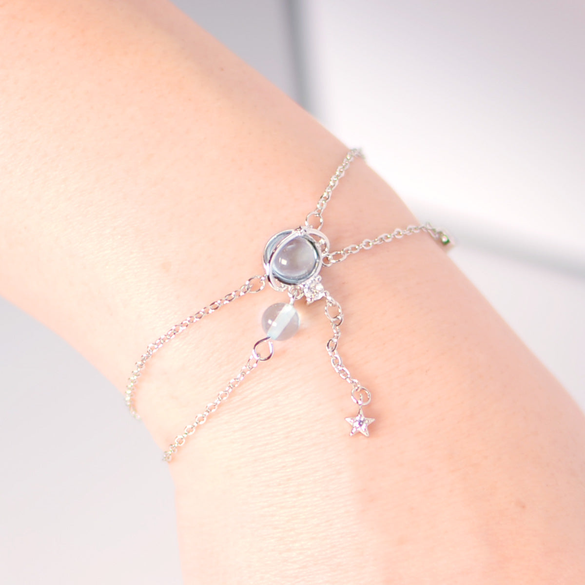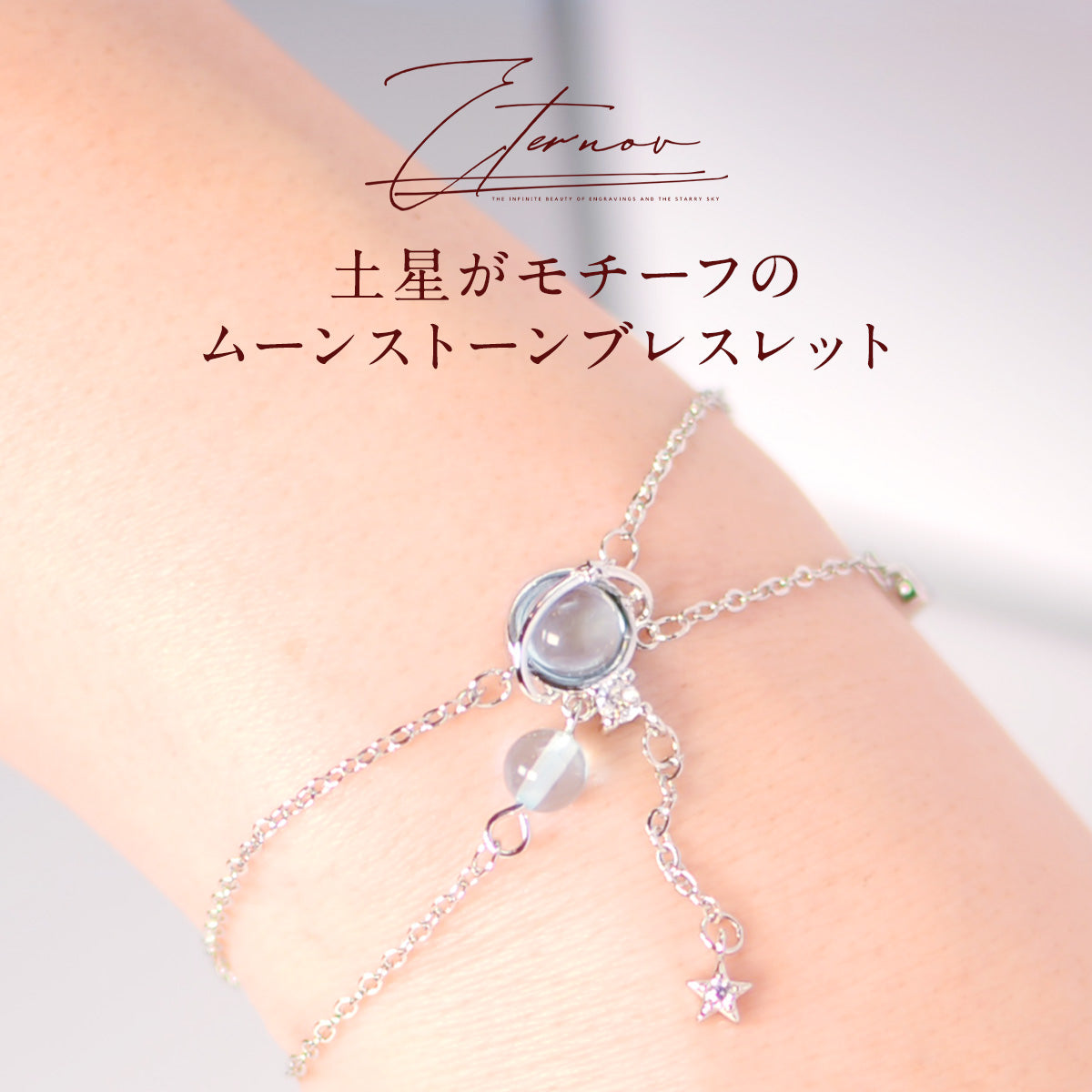 ムーンストーンブレスレット 土星モチーフ ダブルブレスレット スペースレディジュエリー 誕生日 ギフト オールシーズン プレゼント プチプライス シンプル かわいい